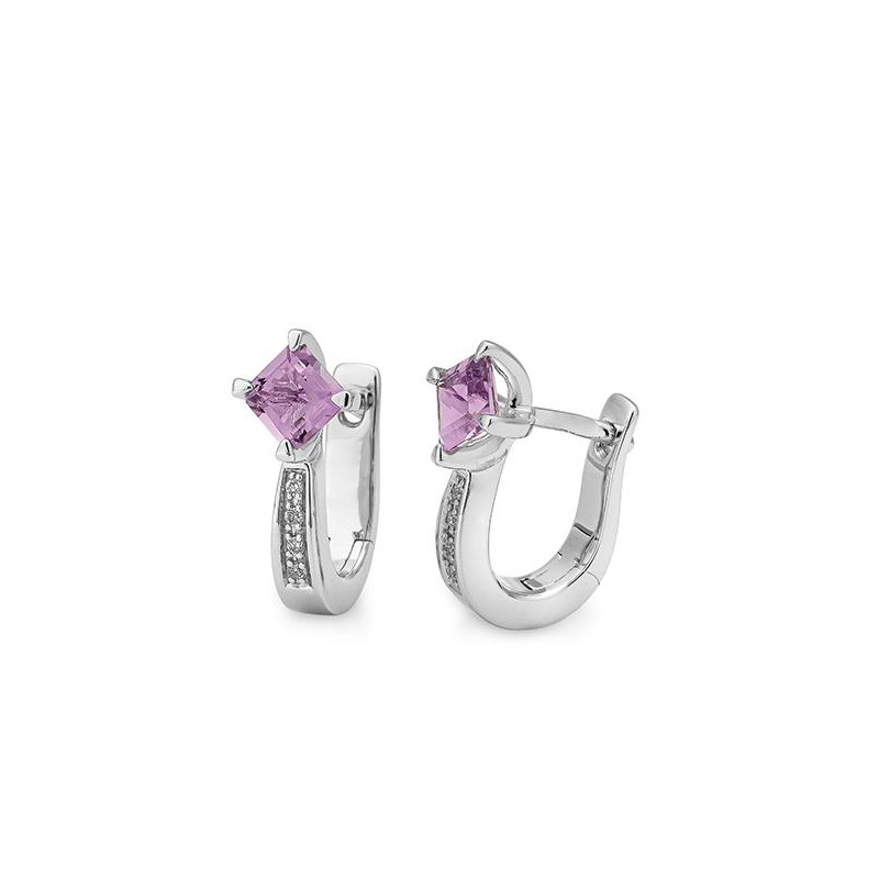 Hoop Earrings - E.amethyst/dia. 0,038 Ct. H/si